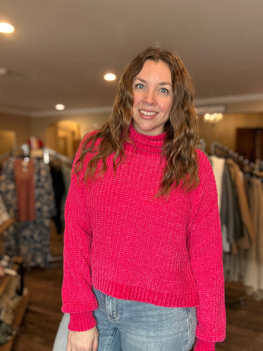Hot Pink Chenille Turtleneck Sweater