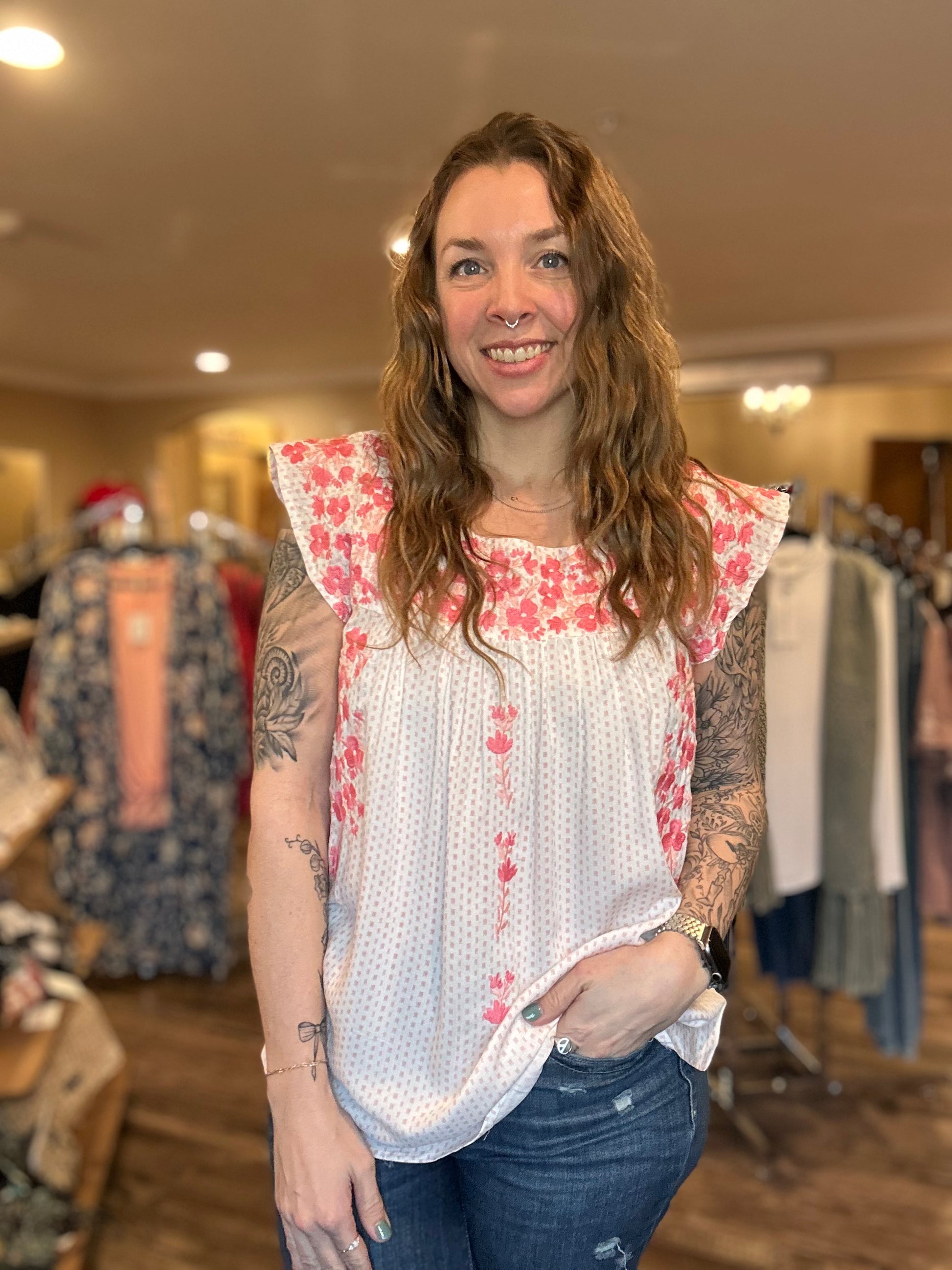 Ivory & Pink Embroidered Blouse